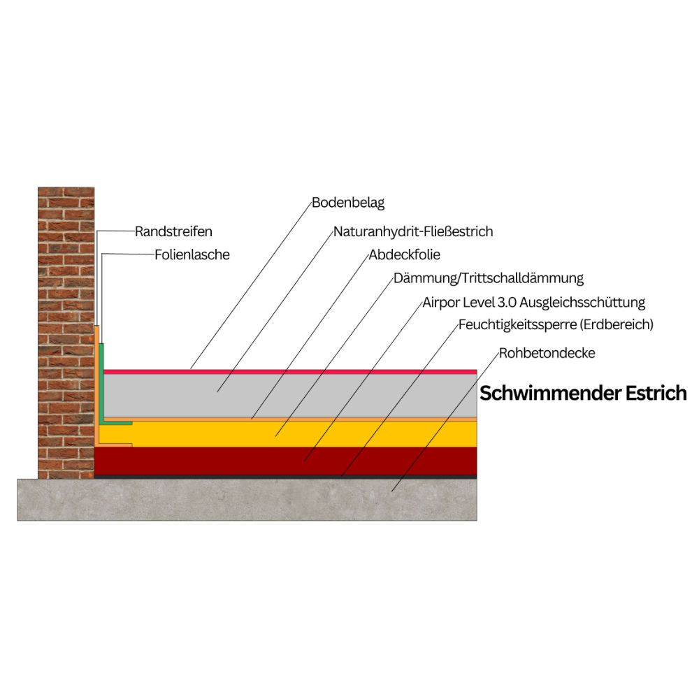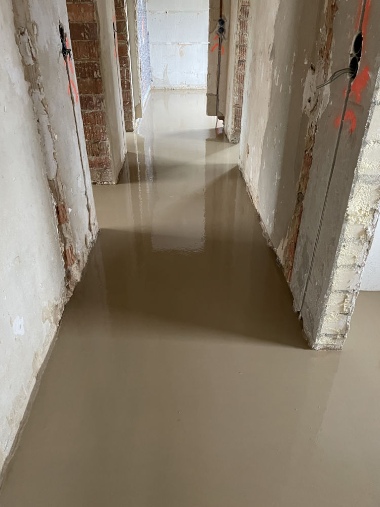 Anschließend kann ein herkömmlicher Estrich (z.B. Fließestrich) verlegt werden.