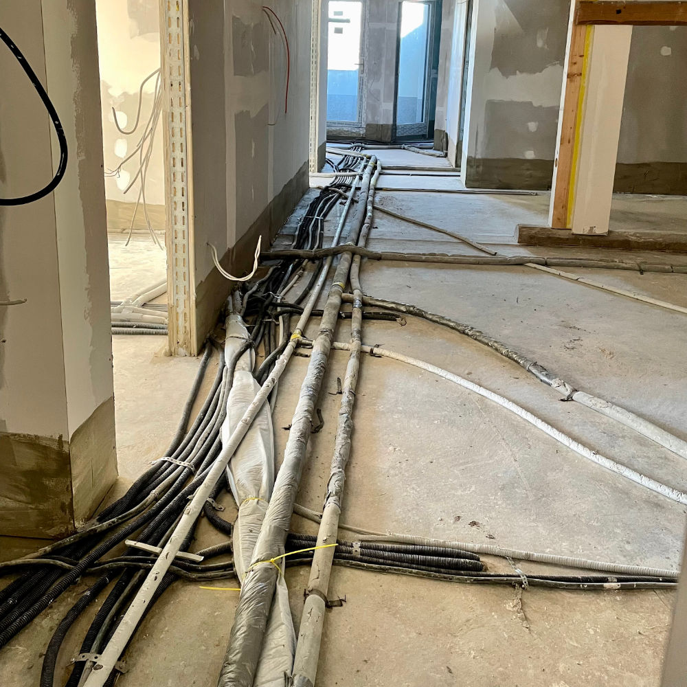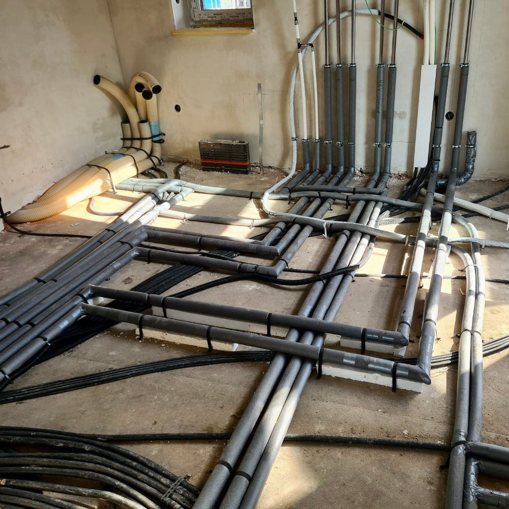 Vollständige Ummantelung aller Leitungen auf der Rohdecke